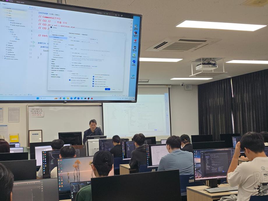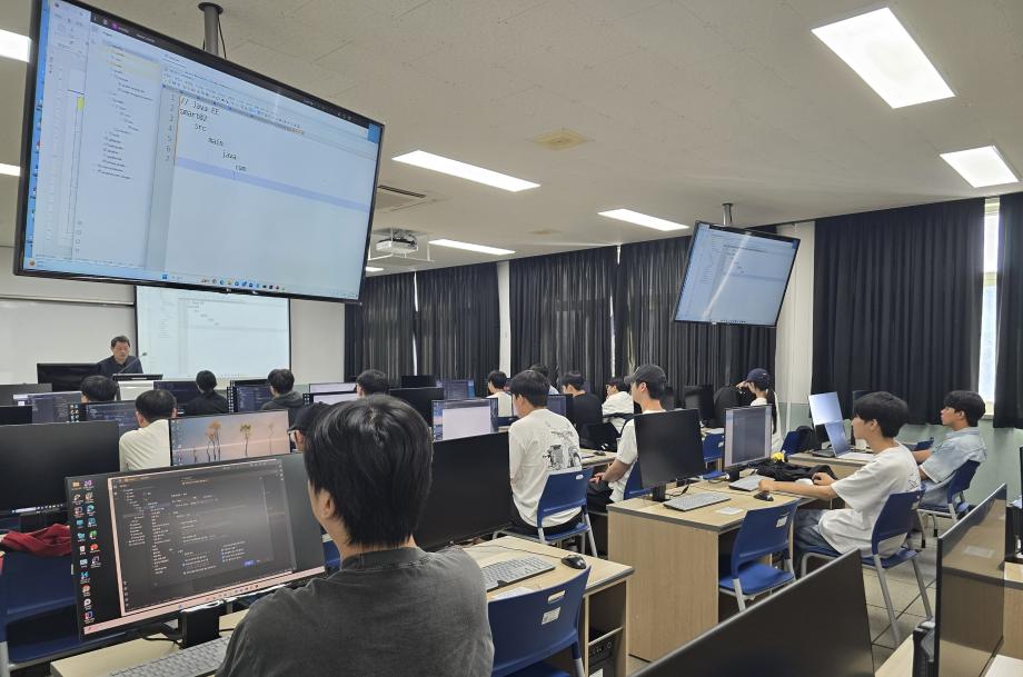 본문 시작 홈으로 SMIT 소식 SMIT 소개 SMIT 교육 SMIT 취업 SMIT 소식 SMIT 입학 홈페이지가이드 갤러리 공지사항 갤러리 경진대회 동아리 갤러리 페이스북 트위터 프린트 스마트IT학부 JAVA언어실습 전공 실습수업 스마트IT학부 961 2025-09-11 스마트IT학부 JAVA언어실습 전공 실습수업 사진입니다. 모두들 적극적으로 그리고 즐겁게 수업에 참여하고 있습니다. 목록 이전스마트IT학부자료구조알고리즘 전공 수업 다음 2025 청룡체전 담당부서 : 스마트IT학부 담당자 : - 연락처 : 043-649-1275 최종수정일 : 2024-10-26 만족도조사 만족도 조사 이 페이지에서 제공하는 정보에 대하여 만족하시나요? 매우만족 만족 보통 불만족 매우불만족