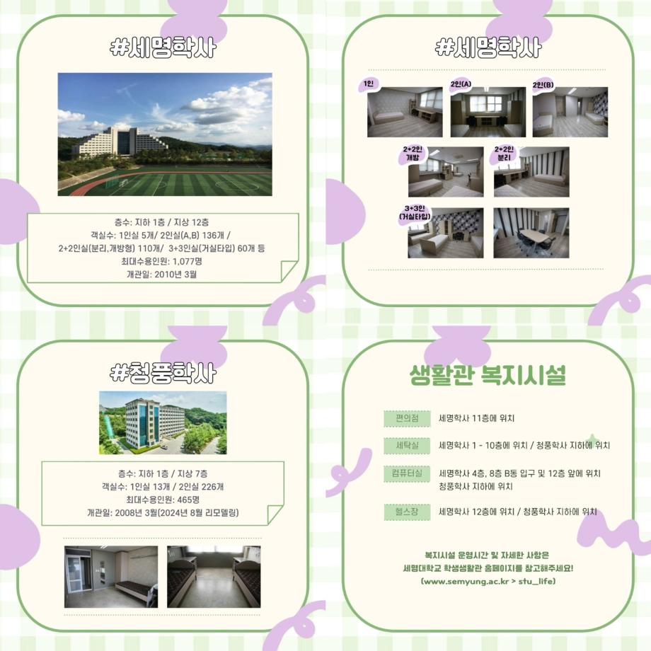세명대학교 여학생 생활관 소개