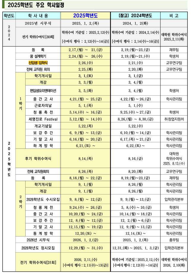 본문 시작 홈으로 학과생활 학과소개 교수소개 교과과정 학과생활 홈페이지가이드 사진게시판 공지사항 사진게시판 전공자료실 동아리 학과행사 사진게시판 페이스북 트위터 프린트 [교무처] 2025학년도 학사일정 산업디자인학과 646 2025-07-14 목록 이전[취창업처] 2025년 알쓸신잡 07월 1주차 다음 [취창업처] 2025년 알쓸신잡 07월 3주차 담당부서 : 산업디자인학과 담당자 : - 연락처 : 043-649-1436 최종수정일 : 2024-10-26 만족도조사 만족도 조사 이 페이지에서 제공하는 정보에 대하여 만족하시나요? 매우만족 만족 보통 불만족 매우불만족