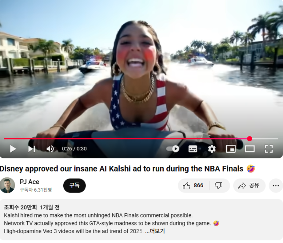 본문 시작 홈으로 AI 학과소개 학과과정 시영소식 입학/취업 AI 학과자랑 SNS소통 홈페이지가이드 AI 콘텐츠 연구소(AI 디자인) 디자인 정보 AI 콘텐츠 연구소(AI 디자인) AI 콘텐츠 연구소(AI 디자인) 페이스북 트위터 프린트 AI가 만든 광고 시각영상디자인학과 470 2025-08-09 실제 AI로 이틀 만에 제작해서 NBA 파이널 스트리밍에서 공개 되었던 Kalshi의 광고 입니다. 이제는 스튜디오/모델 필요 없이 모든 광고를 AI로 제작하는 환경으로 바뀌었습니다. 목록 이전'풀스택 디자이너의 시대' 다음 8월 12일 -중고등학생 대상 취업 특강- AI 브랜딩 만족도조사 만족도 조사 이 페이지에서 제공하는 정보에 대하여 만족하시나요? 매우만족 만족 보통 불만족 매우불만족